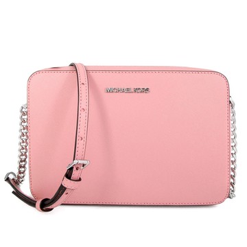 MICHAEL KORS 銀字LOGO防刮皮革鏈帶斜背方包(粉色)