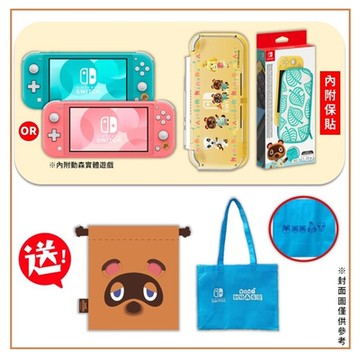 Switch Lite 動物森友會主機(內含遊戲)+動森包貼+保護殼 送購物袋+束口袋
