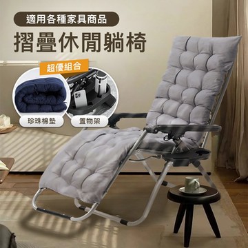 STYLE 格調 買1送2-無段式高承重透氣休閒躺椅/午休躺椅/行軍椅/午休床/露營椅/摺疊椅-贈置物杯架+獨立可拆椅墊(適用多種家具椅墊)