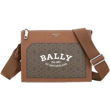 BALLY BROGANN 字母老花帆布拼接可拆織紋斜背/手拿包(咖棕色)