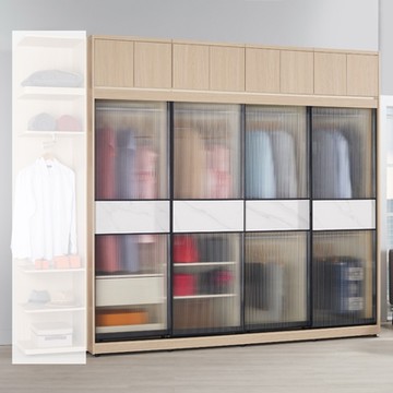 MUNA家居 艾維斯8尺被櫥式鋁框推門衣櫥/4+4+6+6組合 241.5X60X236cm