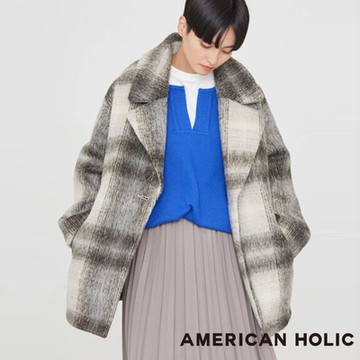 AMERICAN HOLIC 經典格紋設計翻領單釦切斯特大衣