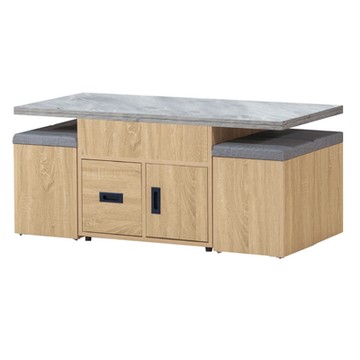 文創集 愛森4尺桌面可伸降大茶几(四色可選+附收納椅凳四張)-120x60x54-76cm免組