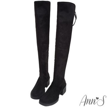 🧨開運專區最高現折2026🧨Ann’S誘人領域-彈力皮革素面後綁帶過膝靴5cm-黑