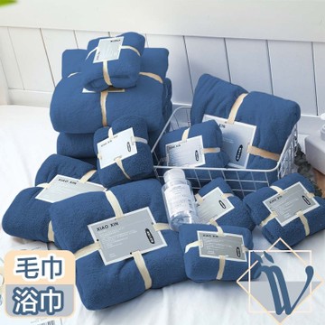 Viita 日系加厚加大快乾秒吸水珊瑚絨毛巾+浴巾套組 海藍
