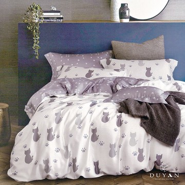 【DUYAN 竹漾】舒柔棉四件式兩用被床包組 喵語呢喃 台灣製(加大)