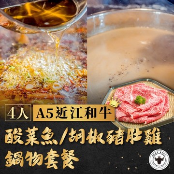 台中 Beef King-4人A5近江和牛酸菜魚/胡椒豬肚雞鍋物套餐