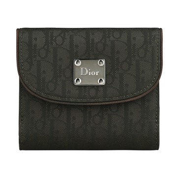 展示品Christian Dior方鐵牌造型LOGO緹花帆布10卡釦式中夾(咖啡)