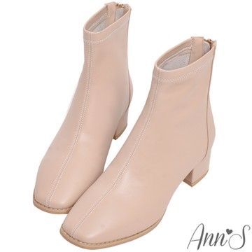 Ann’S無華簡約-素面真皮無負擔低跟短靴4cm-杏
