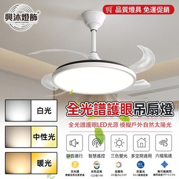 【XINGMU 興沐】簡約餐廳客廳燈 42吋家用隱形風扇燈 42吋全光譜護眼智慧控製吊扇燈 dc變頻大風吊燈