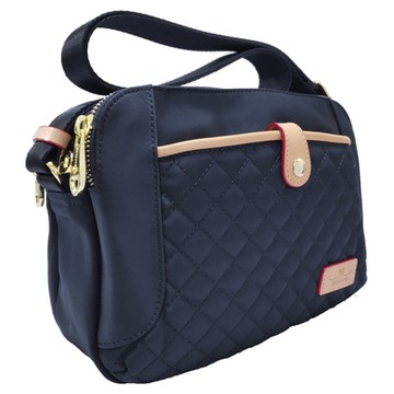 Misstery 側肩包菱格紋防潑水面料搭配頂級植鞣革女用側背包/斜背包-黑A88-060LBK