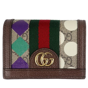 GUCCI 古馳 紅/棕色 提花帆布 GG Ophidia 金扣 兩折短夾 523155 【二手名牌BRAND OFF】
