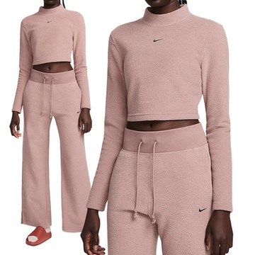 Nike Sportswear 女款 煙燻紫 修身 短版 舒適 抓毛 上衣 長袖 FN3620-208