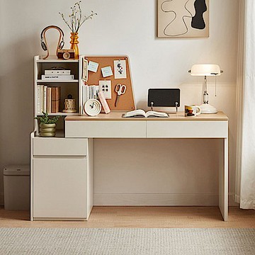 源氏木語小滿奶油風實木原木色伸縮化妝桌櫃0.79MY246D03-(H014403316)