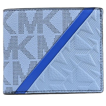 MICHAEL KORS COOPER 撞色條紋MK壓紋印花八卡短夾(天藍/藍)