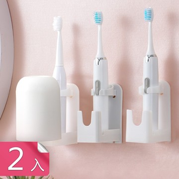 【荷生活】壁掛式衛生防塵倒扣漱口杯設計多功能家用電動牙刷收納架-2入