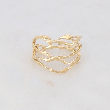 [925純銀]幸福繫繩金色錘紋交織C形可調節戒指【SL773】-金