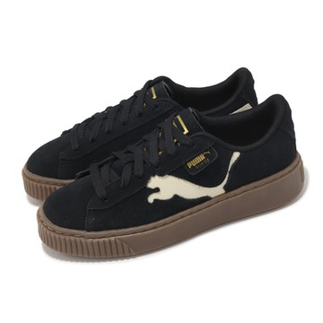 Puma 休閒鞋 Suede Platform Cutout Wns 女鞋 黑 棕 麂皮 大LOGO 微厚底 39723301