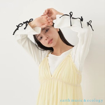 earth music 袖開衩蝴蝶結緞帶設計圓領T恤