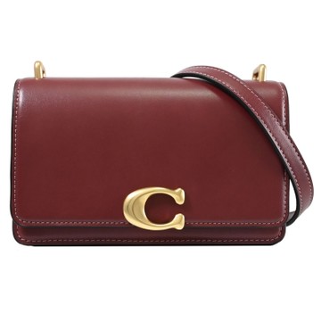 COACH Bandit 金屬C LOGO滑面皮革迷你翻蓋斜背包(酒紅)