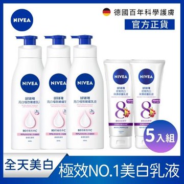 NIVEA 妮維雅 全天美白身體乳(亮白x3+夜美x2)-5入組