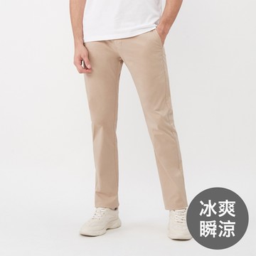 男裝 棉質微彈直筒卡其褲-卡其色