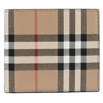 BURBERRY 8057954 經典英式格紋印花對開8卡短夾.卡其