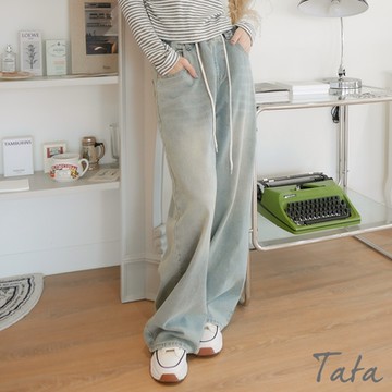 A|復古風線條刷色水洗牛仔寬褲(兩色)
