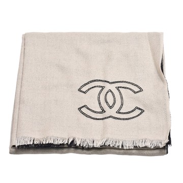CHANEL香奈兒 經典雙C LOGO漸層喀什米爾羊毛混絲披肩/圍巾(灰色)