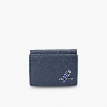 agnes b.Voyage 皮革三折小短夾(深藍色)