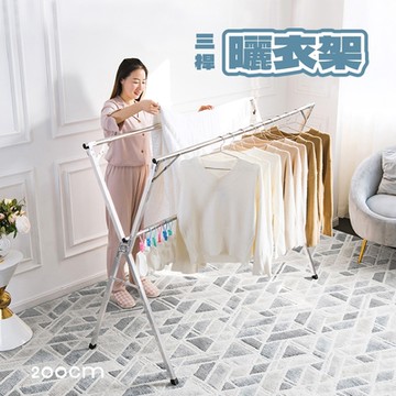 莫菲思 耐重免安裝2米X型三桿不鏽鋼伸縮曬衣架
