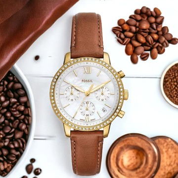 FOSSIL Dazzling耀眼水鑽皮革女錶(ES4303)-白x玫瑰金框/36mm