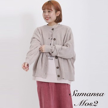 蓬鬆毛絨感珠光紐扣設計圓領針織罩衫(01000613400) - earth music&ecology