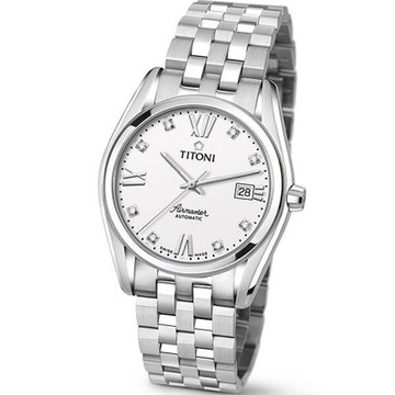 TITONI瑞士梅花錶 空中霸王系列機械女錶(23733 S-583)-白面鍊帶/29mm