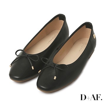 D+AF 浪漫花釦.小蝴蝶結平底芭蕾娃娃鞋*黑