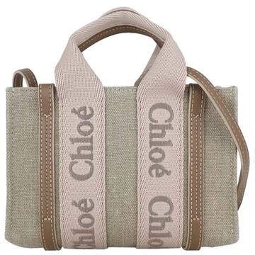 CHLOE WOODY 字母帆布兩用托特包(米x粉邊)小款