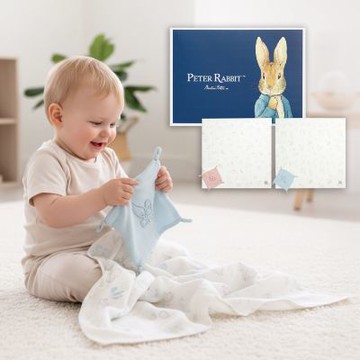 奇哥 - 比得兔天絲泡泡紗包巾禮盒 75x75cm(包巾+包巾綁帶+手搖鈴 寶寶新生兒禮 滿月禮 彌月禮 嬰兒禮盒)