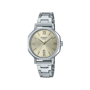 CASIO卡西歐 SHEEN 簡約自信 八角形設計 優雅鵝黃 日期顯示窗 藍寶石水晶玻璃 SHE-4554D-9A_30mm