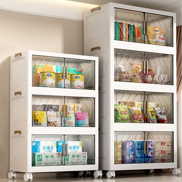 70面寬摺疊雙開門四層收納櫃-附滑輪-024329-01 純白面板