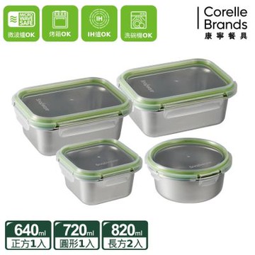 【康寧密扣Snapware】可微波不鏽鋼保鮮盒820ml-2件組