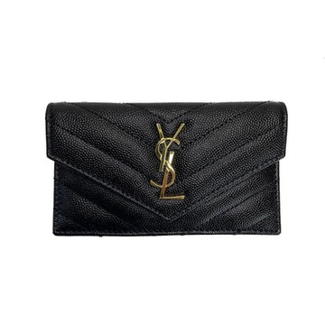 YSL 經典LOGO山形紋信封長夾 (黑色 x 金字) Monogram Saint Laurent