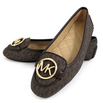 MICHAEL KORS Lillie 大圓標Logo防潑水滿版MK平底娃娃鞋(咖啡色)