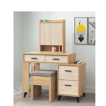 dayneeds Boise波夕木製梳妝台[附椅凳] 化妝桌/收納桌/掀鏡鏡台