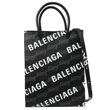 BALENCIAGA 巴黎世家 滿版品牌LOGO兩用小托特包/紙袋包(黑灰)