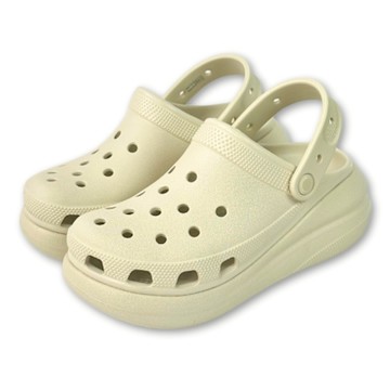 Crocs 卡駱馳 經典泡芙克駱格 CRUSH CLOG 女 米色 增高中性鞋 休閒洞洞鞋 厚底涼鞋 輕量懶人鞋 防水拖鞋 207521-2Y2
