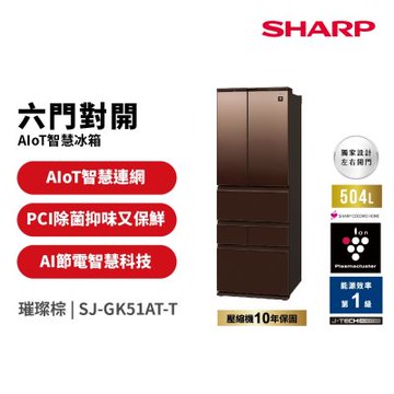 【SHARP 夏普】504L 六門對開AIoT智慧冰箱 SJ-GK51AT 兩色 一級能效 含舊機回收+基本安裝