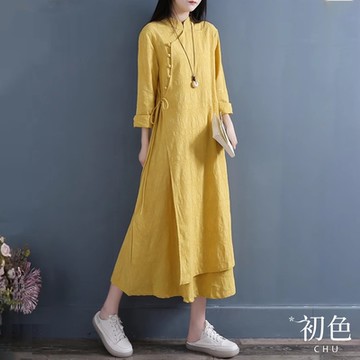 *ORead*雙層中式禪意盤扣改良棉麻連身裙(4色M~2XL)【限定加碼✿全館滿額再折】