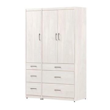 文創集-南亞塑鋼 安格 南亞塑鋼4尺三開門六抽衣櫃/收納櫃-121.2x60.4x200cm免組