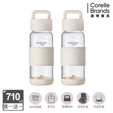 (買1送1)【美國康寧 Snapware】SNOOPY史努比鋅動輕瓷大容量不鏽鋼手提保溫杯800ml+玻璃瓶710ml