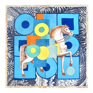 Hermes 愛馬仕 夢幻中的馬鞍絲巾 深藍色 (140cmx140cm)